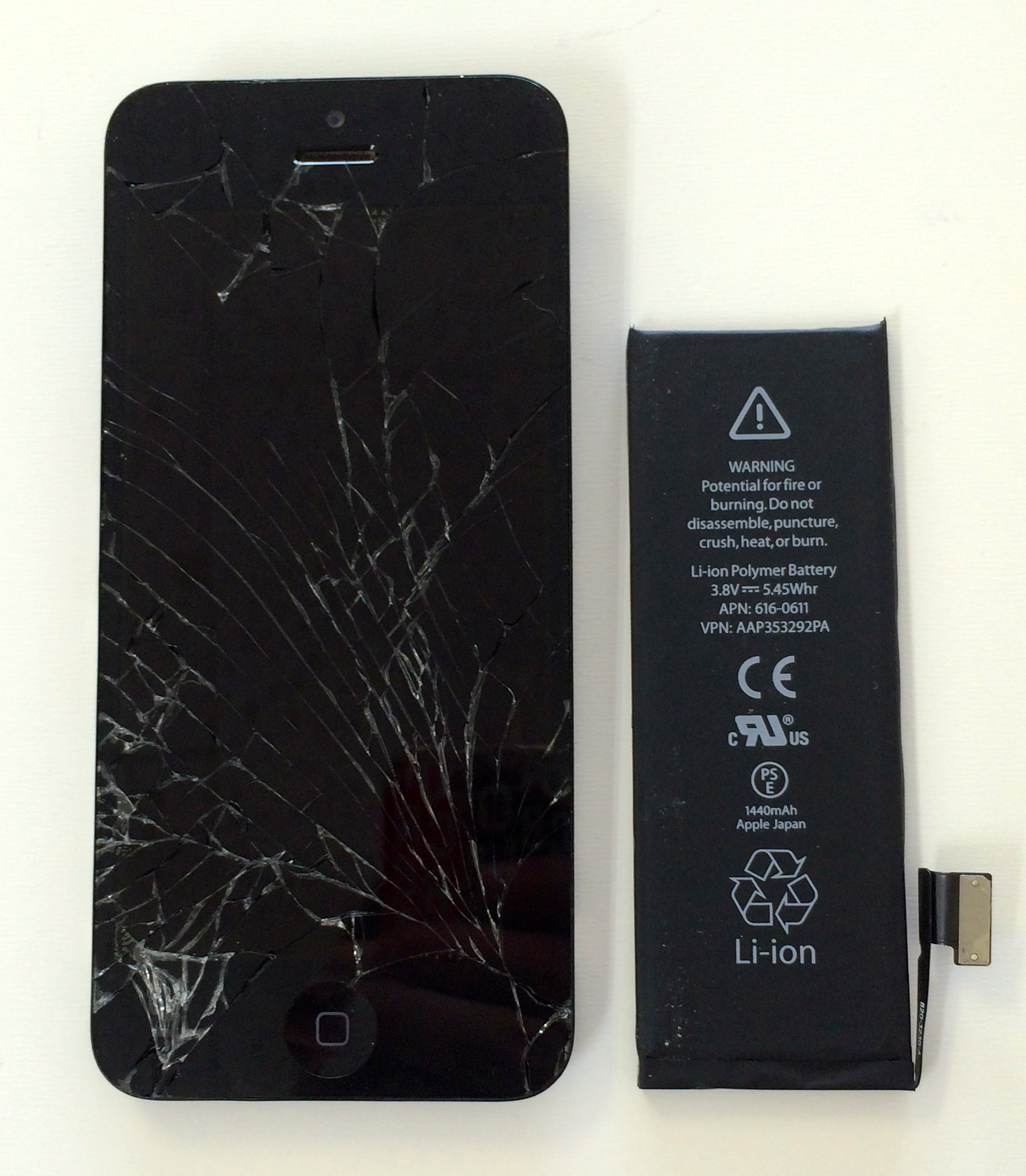 iPhone5 黒 ガラス割れ バッテリー 交換修理 大分市 男性