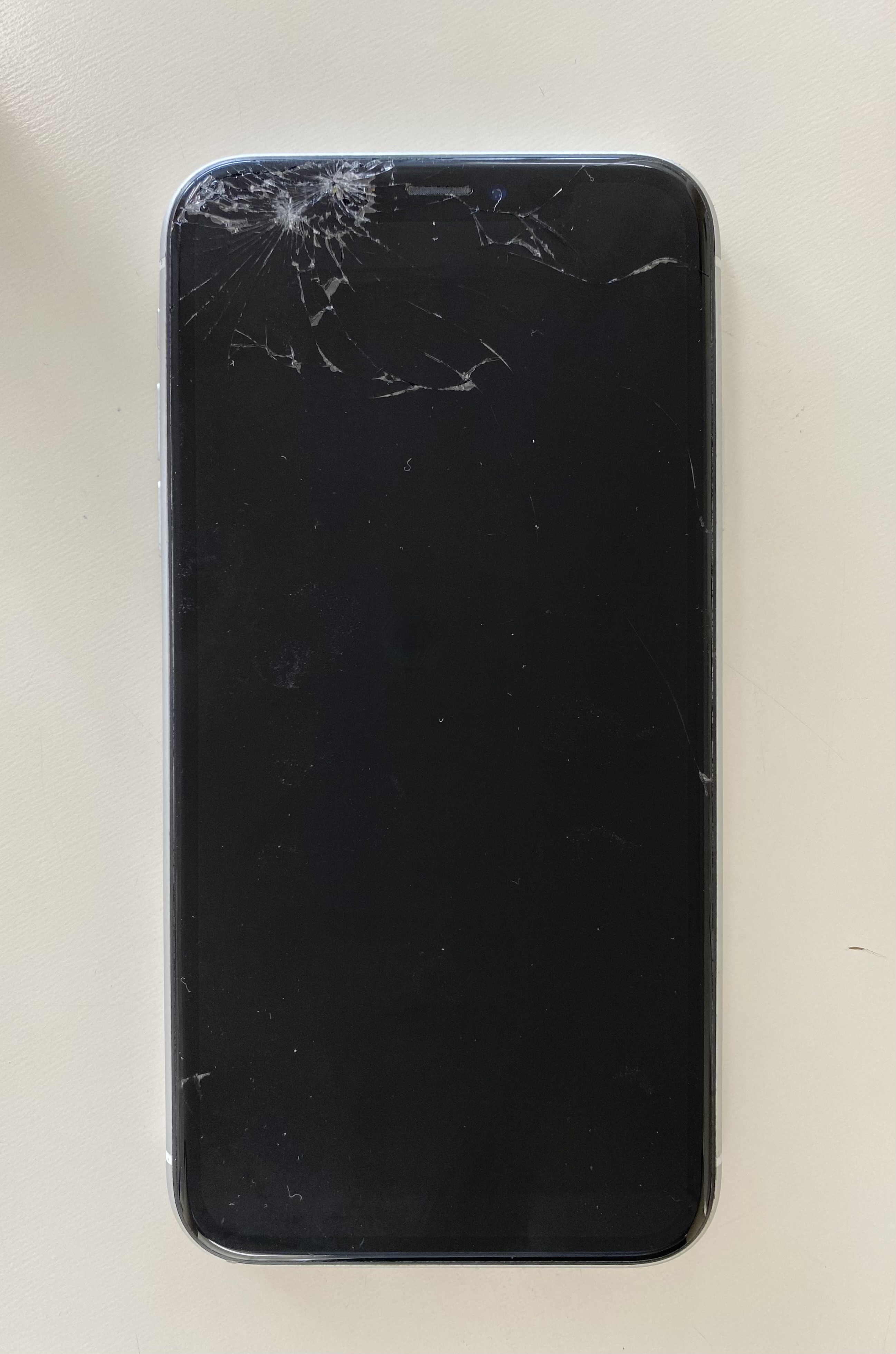 画面上からにヒビ割れていて、表示も少し色がおかしくなっていました。